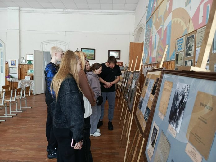 Студенты с интересом рассматривали документы, рукописи, фотографии и книги рязанского поэта, представленные на выставке, и слушали рассказ сотрудников ИКЦ.